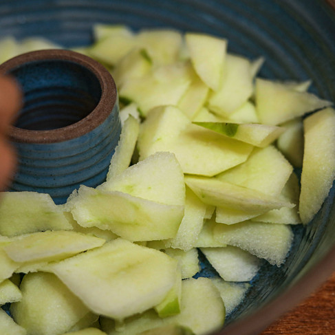את הבצק אני מפוררת עם האצבעות על התפוחים..
